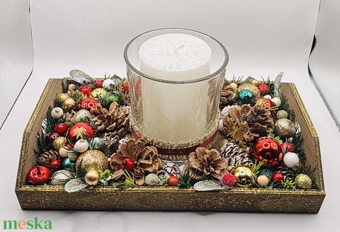 természetes anyagok, fa, toboz, műanyag, díszek, üveg, ragasztó, gyertya