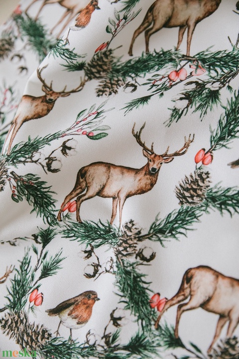 Textilszalvéta – szarvas és vörösbegy – színes grafikával