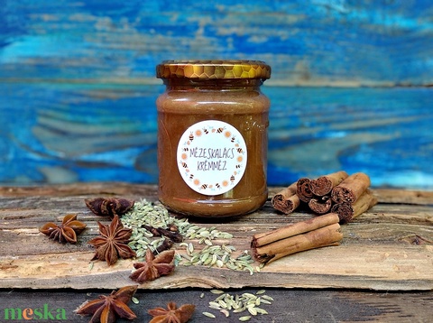 - Anyaga: üvegcse, matrica, selyemszalag, repce méz, fűszerek