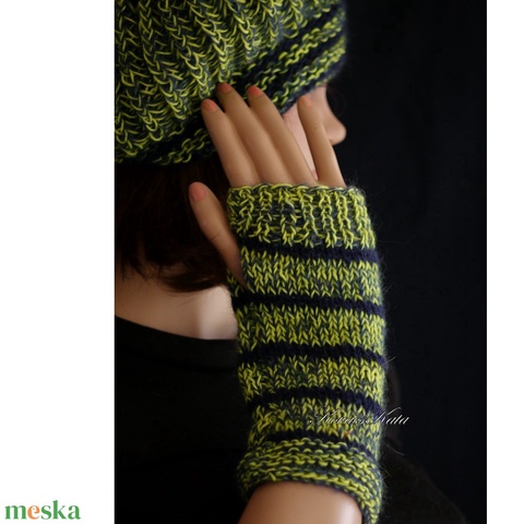 BOSZI KESZTYŰ / gyapjú - kézzel kötött rövid kesztyűszár, kézmelegítő / saláta