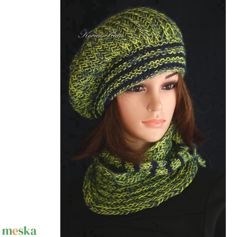 BORBÁLA SZETT / saláta - exkluzív kézzel kötött gyapjú sapka körsállal