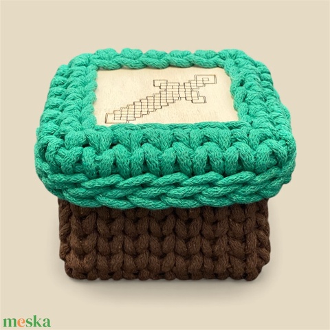 Minecraft stílusú, horgolt doboz