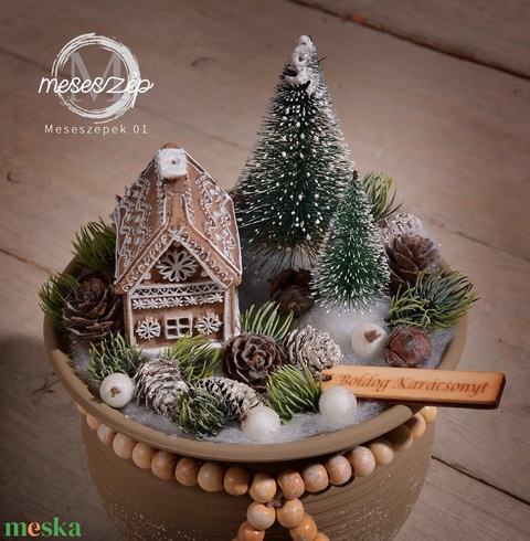 Mézeskalács ház az erdőben karácsonyi asztaldísz