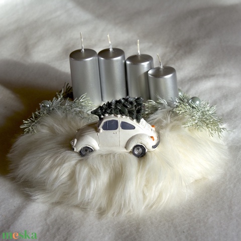 Fehér Bogár adventi koszorú fehér szőrmével