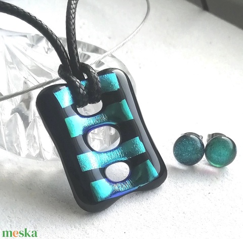 - Anyaga: dichroic üveg, ékszer szerelék, bőrszál, viaszolt szál, üveg