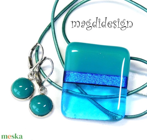 Türkiz színtrió üvegékszer szett nyaklánc kapcsos fülbevaló