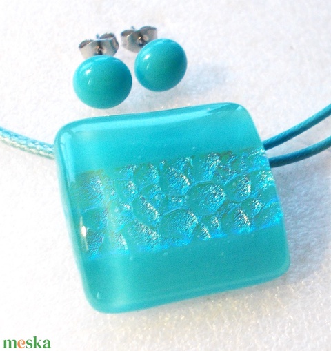 AKCIÓ! Türkizkék csillogás ékszerszett, nyaklánc és fülbevaló, ajándék ballagásra, névnapra, születésnapra.