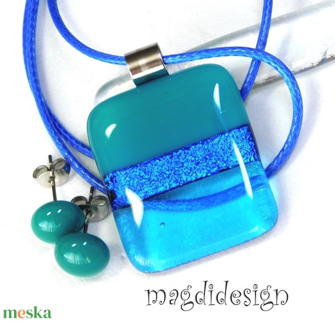 Türkiz színtrió üvegékszer szett nyaklánc stiftes fülbevaló