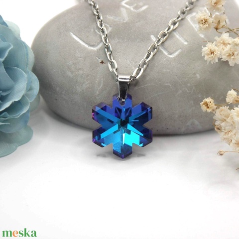 Hópehely formájú sötétkék Aurora kristály ezüst láncon – Jeges éj