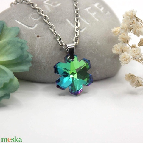 Hópehely formájú zöldes-kék színű Aurora kristály ezüst láncon – Téli csepp
