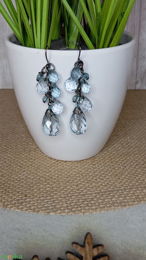 Áttetsző, kék árnyalatú lógós fülbevaló