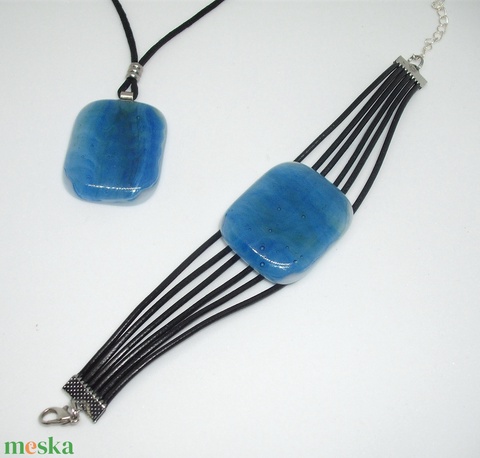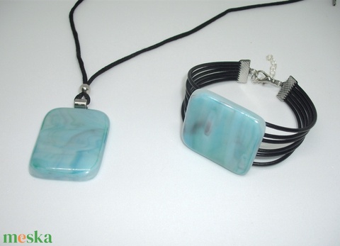 ÜVEG MEDÁL KARKÖTŐVEL türkiz színű üvegből