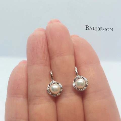 Exkluzív patentos gyöngyös fülbevaló cirkónia kövekkel – Az örök elegancia TermékleírásFedezd fel a BáldyDESIGN kifinomult patentos gyöngyös fülbevalóját, amely tökéletes választás mindennapi viseletre és különleges alkalmakra egyaránt! Ez a klasszikus ékszer egyedülálló módon ötvözi a természetes édesvízi gyöngy időtlen báját a csillogó cirkónia kövek modern ragyogásával.A fülbevaló fő dísze egy ragyogóan fehér, minőségi édesvízi tenyésztett gyöngy, amelyet aprólékosan csiszolt, szikrázó cirkónia kristályok ölelnek körül, egy virágra emlékeztető, finom keretben. Ez a különleges design garantálja, hogy viselője mindenhol magára vonzza a tekinteteket.Főbb jellemzők és előnyök-Patent záras kialakítás, biztonságos és kényelmes viselet. -Valódi édesvízi gyöngy klasszikus, időtlen szépség. A gyöngy minden bőrtónushoz illik, eleganciát sugároz. Gyöngyös fülbevaló, édesvízi gyöngy ékszer, tenyésztett gyöngy-Cirkónia kő díszítés: extra csillogás és luxus megjelenés. A cirkónia a gyémánt ragyogását kölcsönzi kedvezőbb áron. -Finom, elegáns méret sokoldalúan hordható. Tökéletes irodai viseletre, esküvőre, vagy ajándéknak. A fülbevaló hossza: 15mm