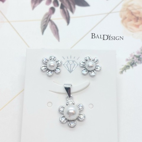 Ezüst virágos fülbevaló és medál gyönggyel
