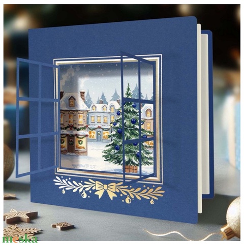 Karácsonyi képeslap egyedi grafikával, kivágással