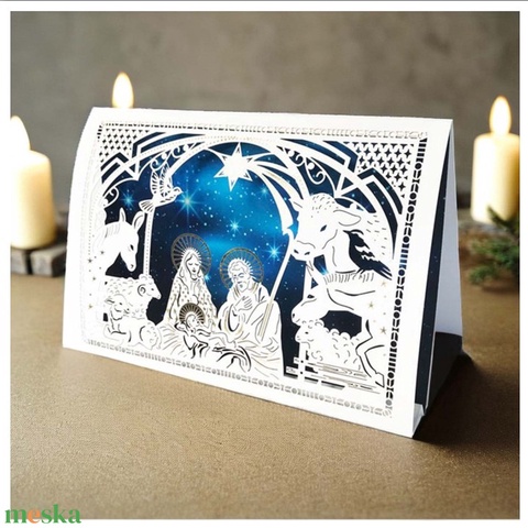 Karácsonyi képeslap egyedi grafikával, kivágással