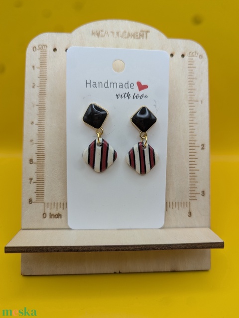 Kézműves fülbevaló polimer gyurmából (polymer clay), karácsonyi ajándék, kicsi, négyszög - 124