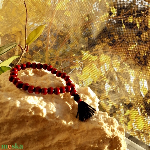 Bordó Lélekfény fa mala karkötő – a bátorságért