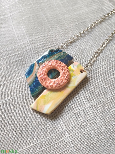 - Anyaga: ékszergyurma, fém szerelék, fém lánc