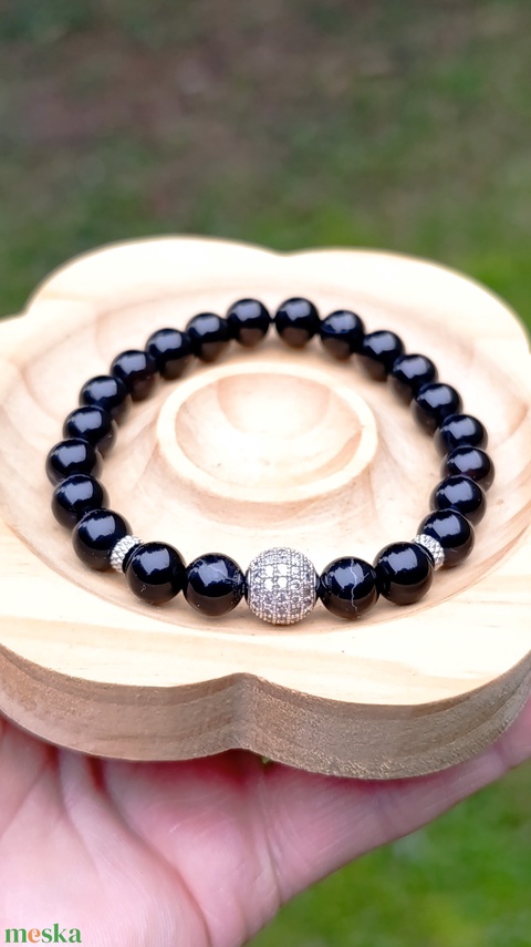 Fekete ónix ásványkarkötő cirkónia gömbbel