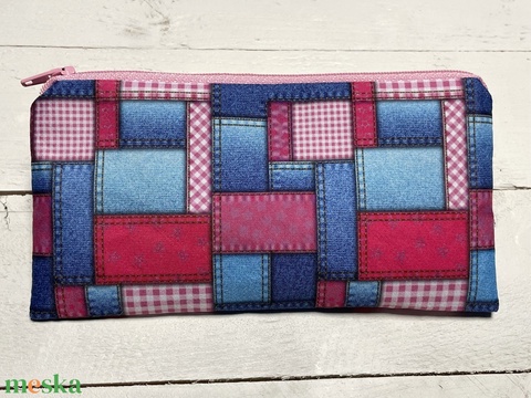 Patchwork mintás textil tolltartó - pipere - neszesszer