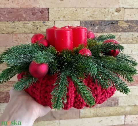 Piros adventi asztaldísz