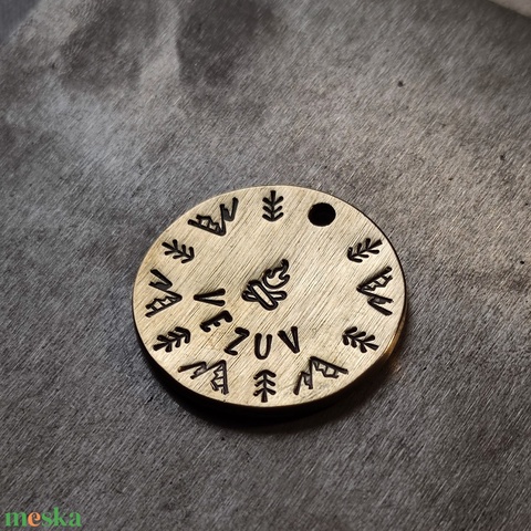 Kézzel készült sárgaréz kutyabiléta – Vadösvény (⌀30mm)