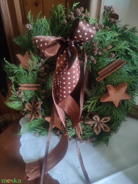 Téli kopogtató természetes alapanyagokból - karácsonyi tuja koszorú - natúr ajtódísz tujával - téli örökzöld kopogtató