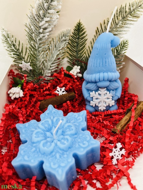 Kék Manó és Hópehely Gyertya Szett