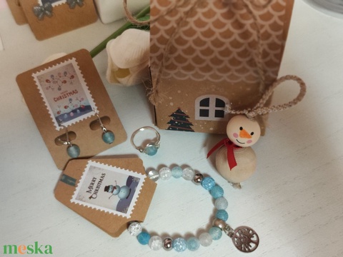 Elegáns Achát karkötő, fülbevaló, gyűrű szett, ajándék dísszel!
