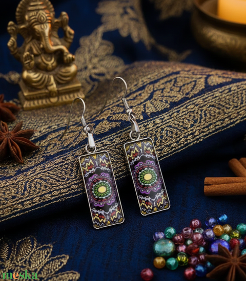 Mandalás Színes Medál Fülbevaló - Indiai Ihletésű Ékszer