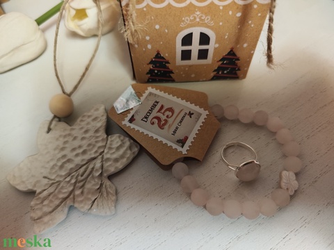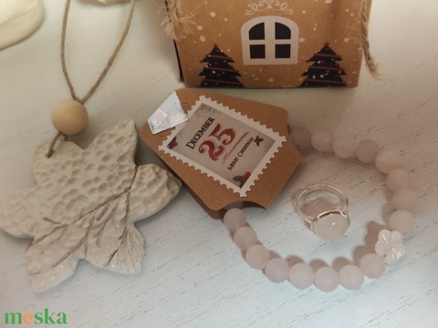 Rózsakvarc karkötő és gyűrű szett dísszel!
