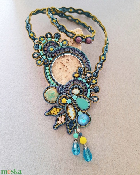 - Anyaga: sújtás zsinór, japán kása, cseh csiszolt gyöngy, ragasztó, cérna, nikkel mentes fémszerelék, strasszlánc, swarovszki