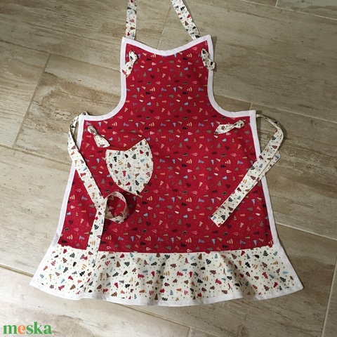 Fenyőfa mintás- bélelt kötény piros - konyhában is csinosan