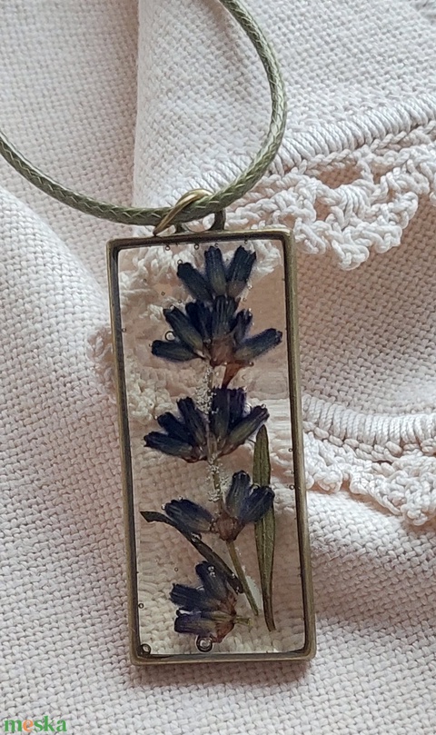 - Anyaga: préselt levendula, ékszer gyanta, zsinór, rézkeret