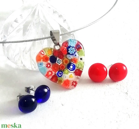 Virágok szívben muránói ékszerszett , ajándék karácsonyra, névnapra, születésnapra.