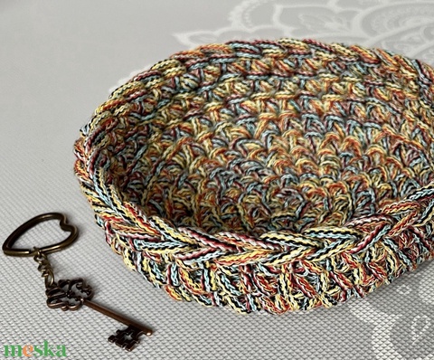 Horgolt kulcstartó kosár különleges fonalból - Kisherceg design