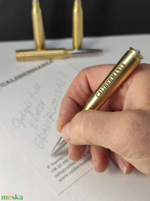 Töltény golyóstoll, egyedi gravírozással lőszeresládában. Vadász ajándék