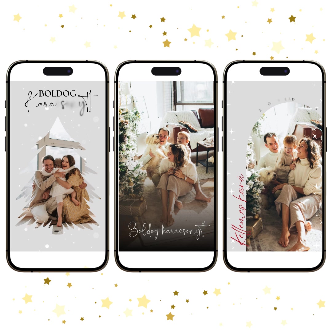 Minden egyes képeslap kétoldalas, finoman animált, és lágy ünnepi zenei aláfestéssel szólal meg. Amikor a képeslap életre kel a mozgó csillagok, hópelyhek vagy fények segítségével, a karácsony minden szépsége belefér abba a 10–16 másodpercbe, amely teljesen egyedi módon meséli el a család, a pillanat vagy a fotók történetét. Egyetlen mozdulat, és máris kész az a videós üdvözlet, amelyre mindenki emlékezni fog.