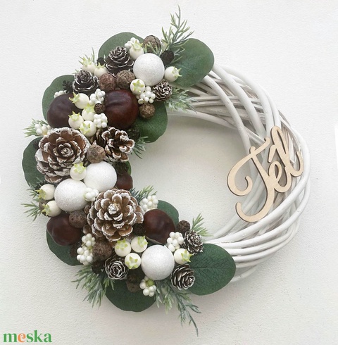 koszorú alap, gömbök, műfenyő, vadgesztenye, toboz