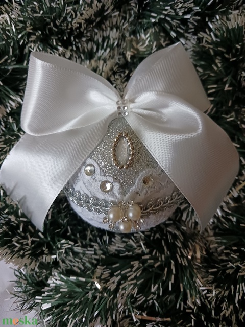 Ezüst csipkés,diszitett gömb