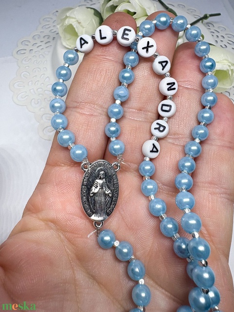 Egyedi gyöngyös rózsafüzér – személyre szabható névvel ????