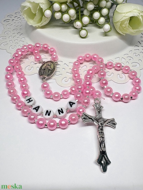 Egyedi gyöngyös rózsafüzér – személyre szabható névvel ????