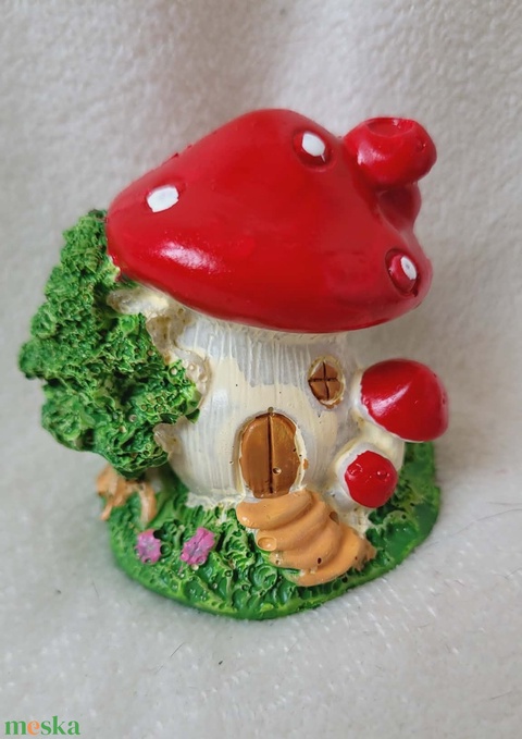 Mesebeli gombaházikó tündérkertbe (piros és sárga)