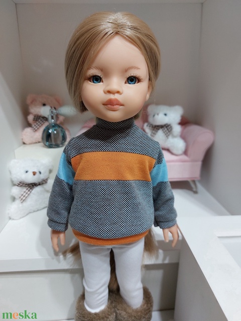 Paola Reina narancs-türkiz csíkos hosszú ujjú pulcsis szett