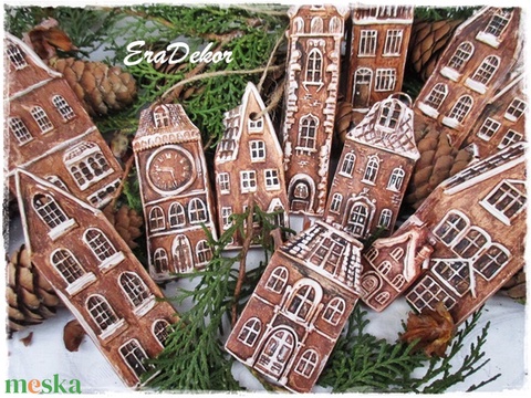 Rusztikus házak karácsonyfadíszek 16 db/szett
