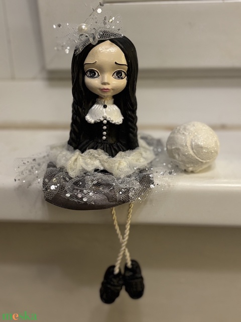 Wednesday lógó lábu kézműves félbaba