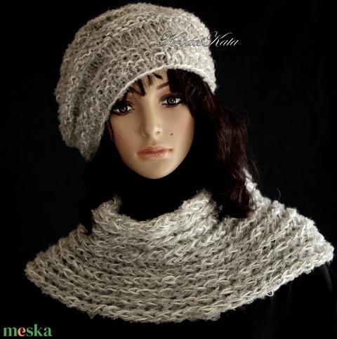 CSIGA-SZETT / alpaka - exkluzív kézzel kötött sapka-sál szett / szürke KÉSZLETEN