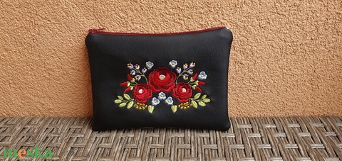 - Anyaga: textilbőr, vászon, varrócérna, húzózár, hímzőcérna