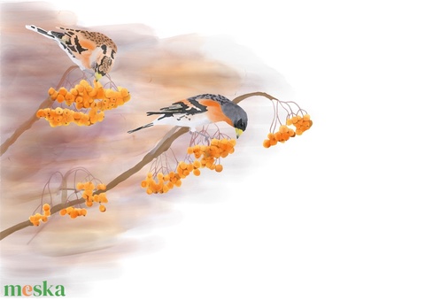 Madárberkenyén táplálkozó fenyőpintyek - Limitált példányszámú A4 giclée művészeti nyomat